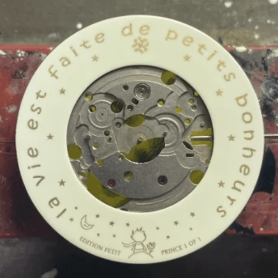 C'est un cadran unique réalisé pour ma maman, imprimé avec de l'encre dorée.