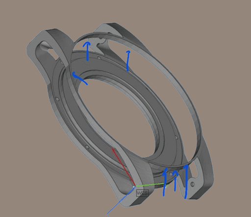 Je suis passé par plusieurs versions. Initialement, je pensais que la première version serait imprimable. Cependant, après avoir discuté de la faisabilité de la pièce avec des techniciens de l'entreprise où j'avais choisi de la faire sous-traiter, nous nous sommes rendu compte qu'il y aurait eu trop de supports nécessaires lors de l'impression. Cela aurait entraîné une augmentation considérable du coût de fabrication en raison du surplus de main-d'œuvre pour enlever ces supports.